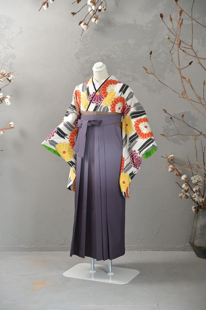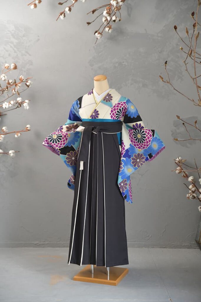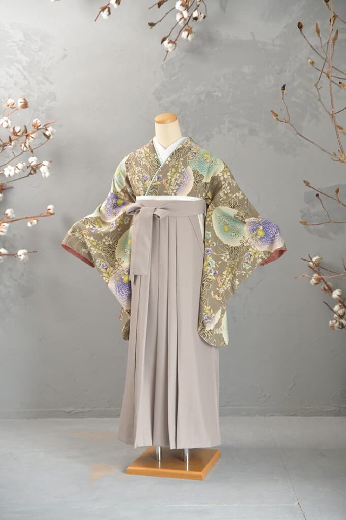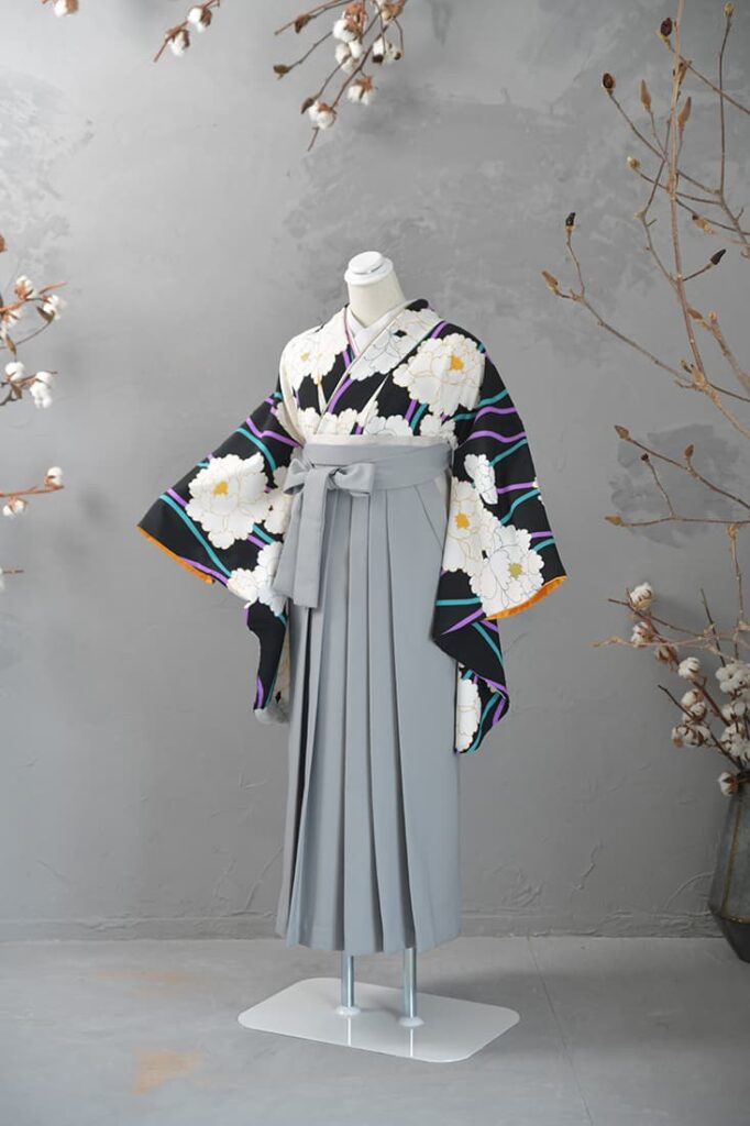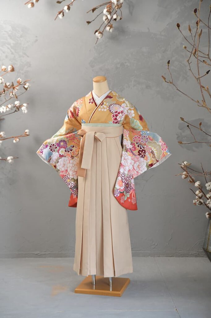 卒業袴とは、上半身に着物(主に二尺袖)、下半身に袴を合わせた和装スタイル。動きやすさと華やかさを兼ね備えた装いで、卒業式を迎える女性たちに圧倒的な人気を誇ります。