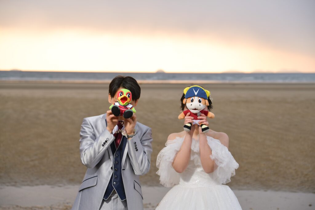 撮影の時には、二人の共通の趣味のグッズをたくさん持ちこみました。私たちらしい写真が残せたと思います!